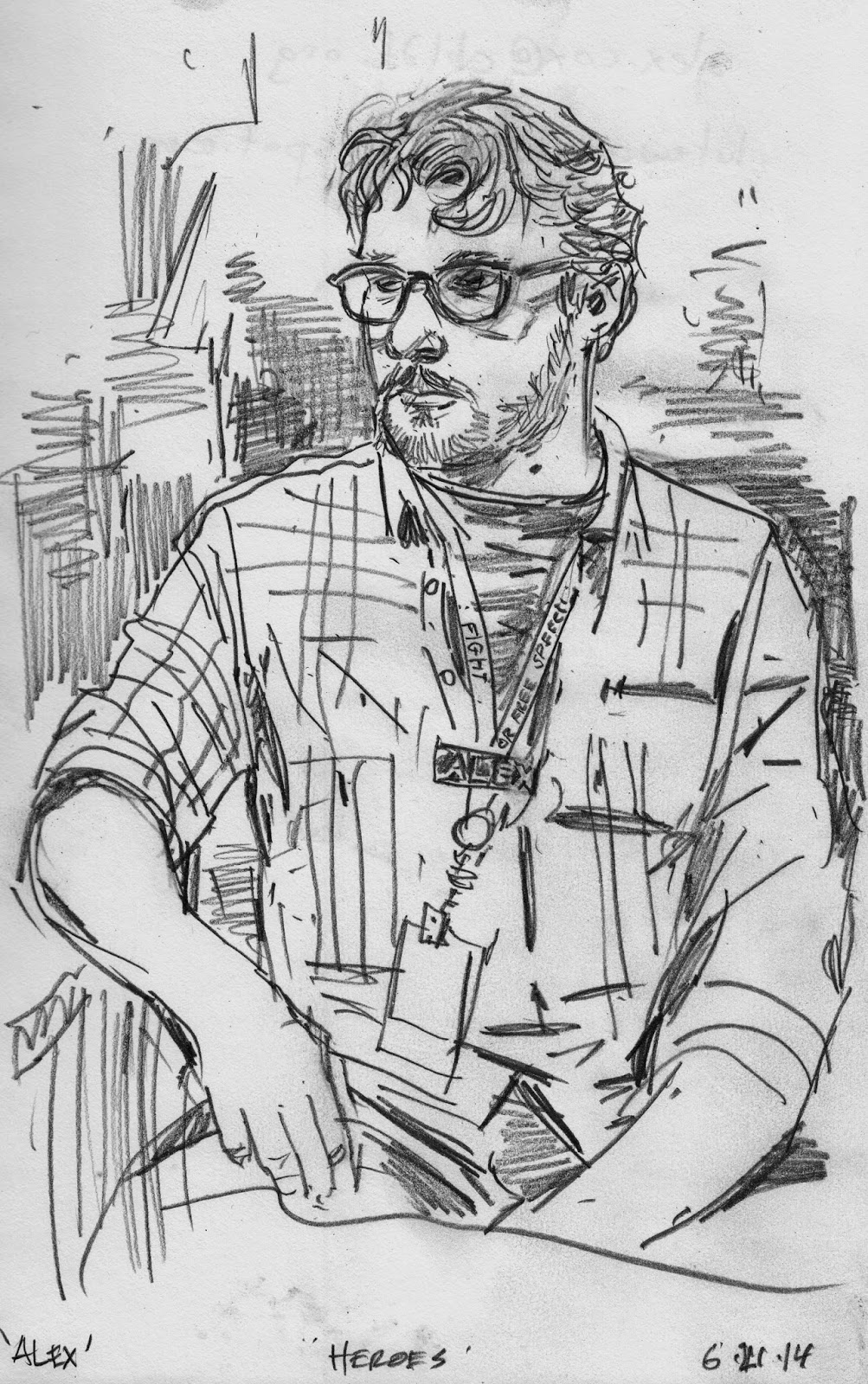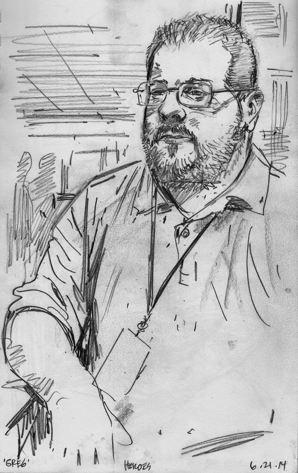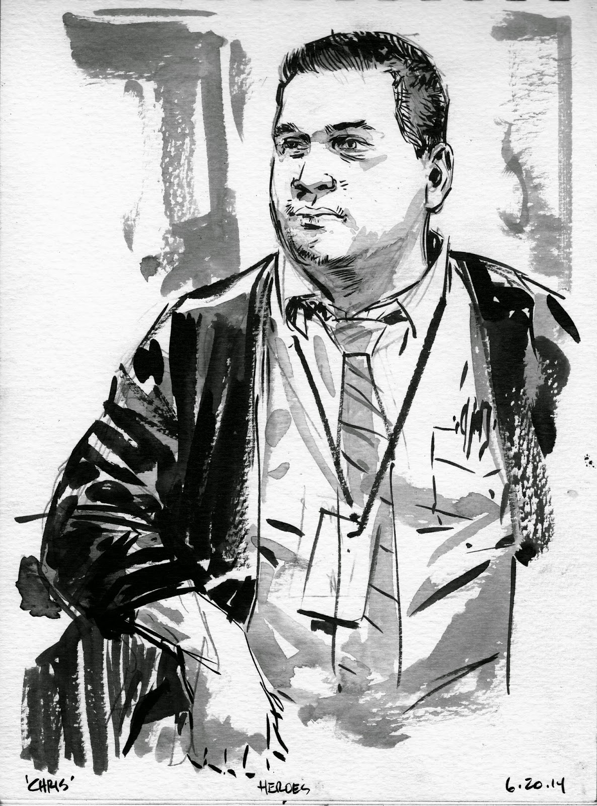 The CONVENTION PORTRAIT PROJECT is a very earnest endeavor. I'm not drawing exaggerated caricatures or making fun of anybody. It's a straight forward documentary drawing project. I keep the drawings but I'll send you a high res scan after the show.